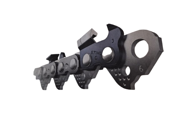 Catena Hexa maggiore efficacia sul lavoro durata prolungata e prestazioni di taglio costantemente elevate. Le catena Hexa sono indicate per la selvicoltura professionale e la cura degli alberi. Le catene a scalpello si distinguono per la specifica forma del dente a V. La geometria speciale mantiene la catena affilata fino al  15% in più e ne aumenta la durata.
