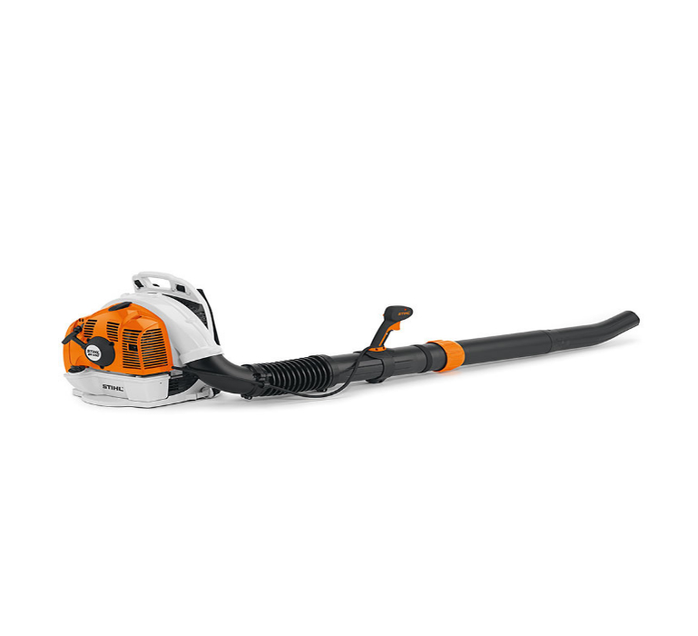 Soffiatore potente con tubo di soffiaggio orientabile in lunghezza. Perfetto per rimuovere foglie o erbacce da grandi superfici. Impugnatura morbida, sistema antivibrante, motore 2-MIX, leva gas bloccabile con tasto di arresto, ElastoStart, tracolla.